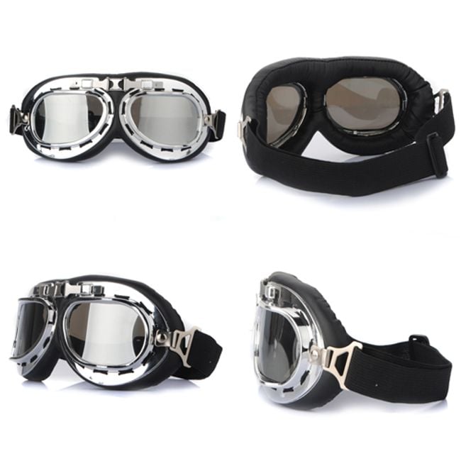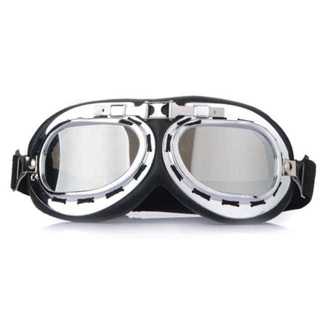 High-quality motorcycle goggles with padded inner side and a chrome finish. The rubber strap can be adjusted to fit the size of your head.