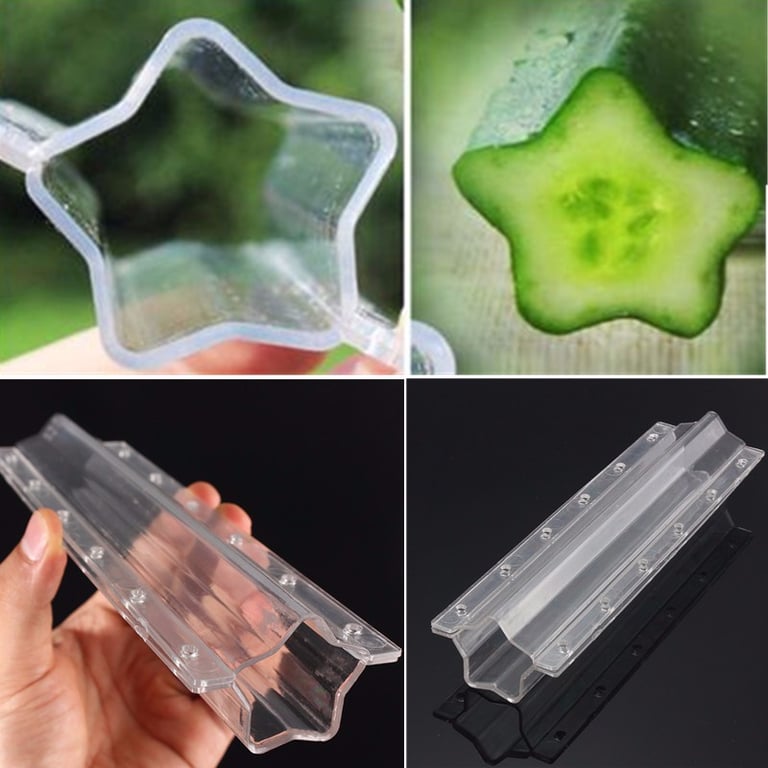 Usage: Simply attach the mould to a small growing cucumber using screws placed in the holes on the sides, and wait for the cucumber to grow. Once the cucumber is large enough, remove the mould and you will have a cucumber in the shape of a star or heart. The mould can also be used for carrots, courgettes, tomatoes, etc.