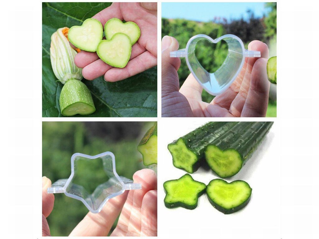 Shape vegetables and fruits using moulds while they are still growing. Grow your wife, for example, an apple or a tomato in the shape of a heart! Dazzle your guests with food garnished with cucumber hearts or stars.