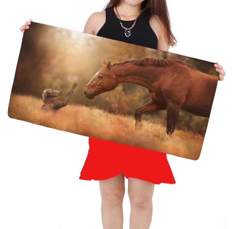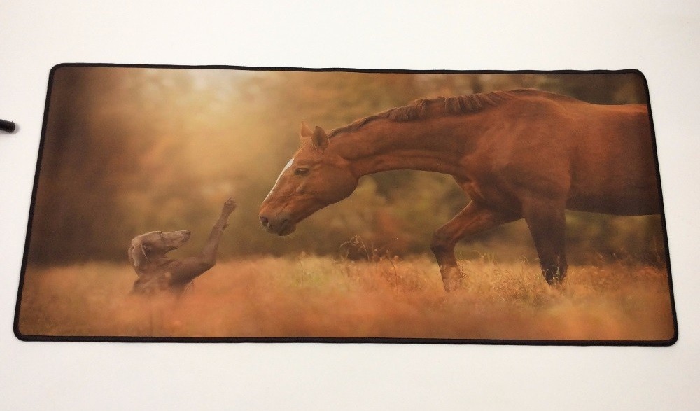 Beautiful and large mouse and keyboard mat featuring a print of a horse and a dog.