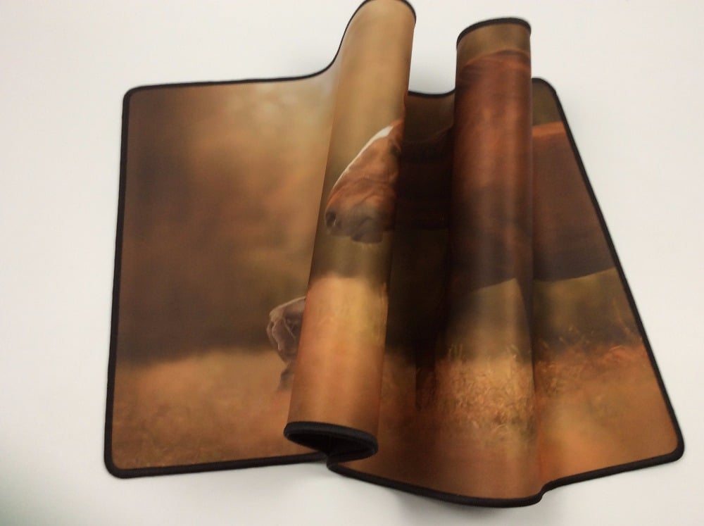 Beautiful and large mouse and keyboard mat featuring a print of a horse and a dog.