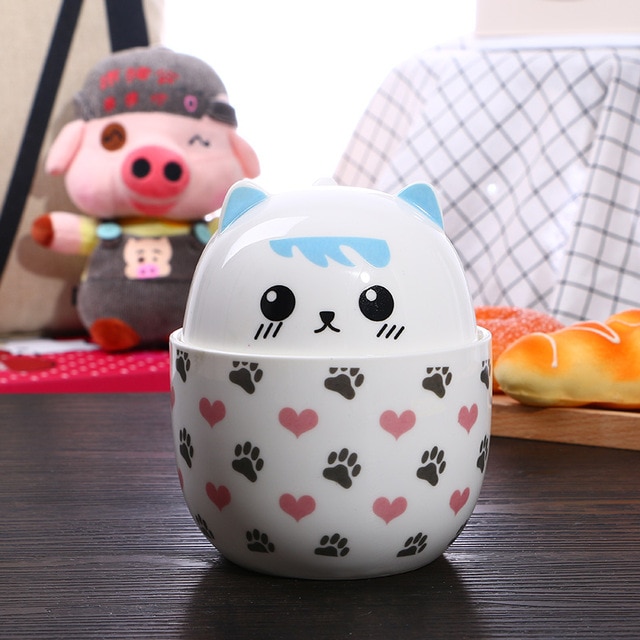 Mug with a lid featuring a Kitty cat design.