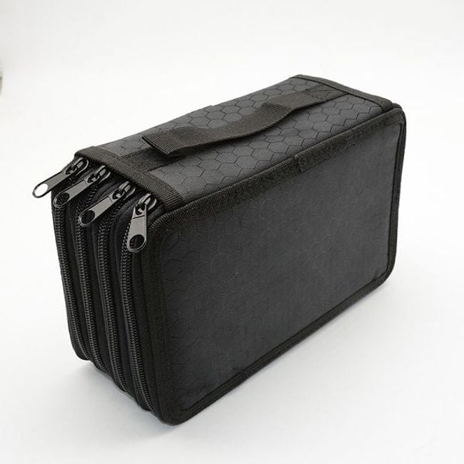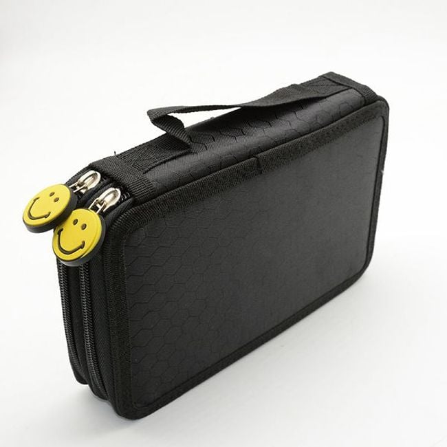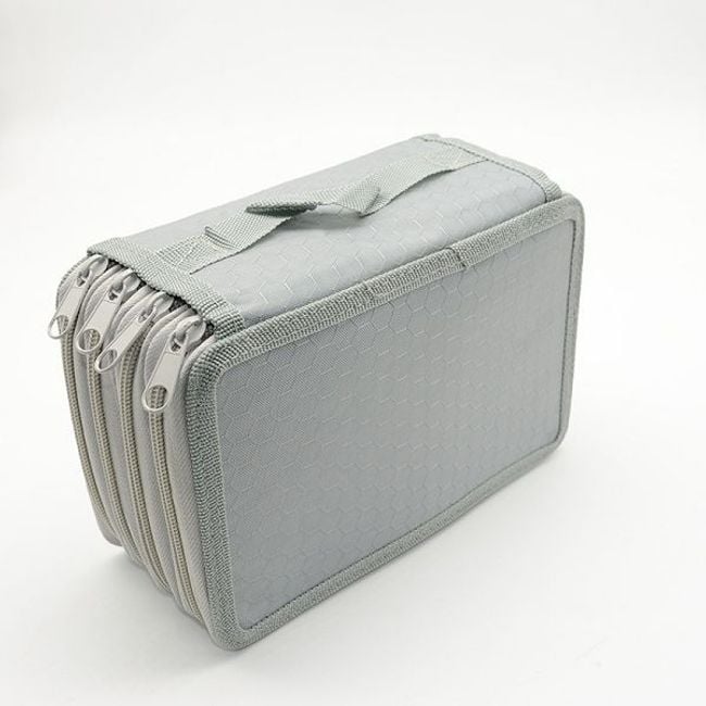 The pencil case has several layers, so it can hold everything you need for school; you can put markers in one layer, and coloured pencils, pencils or pens in another.