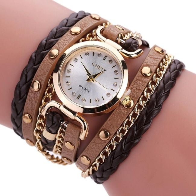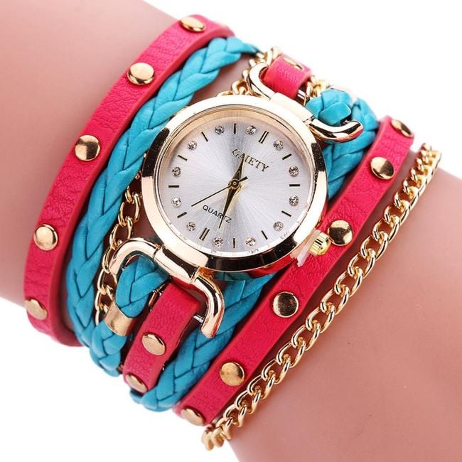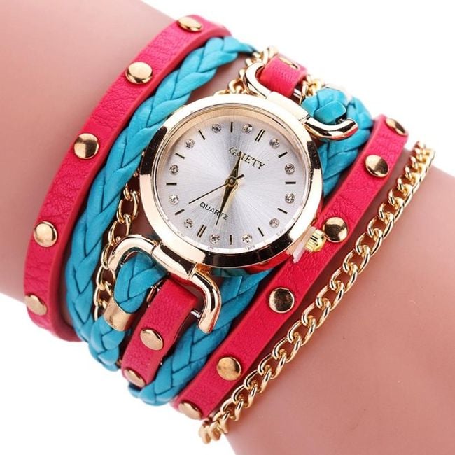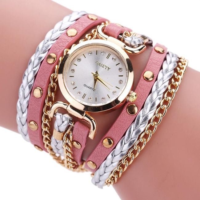 The watch is multi-layered and has a clear dial.