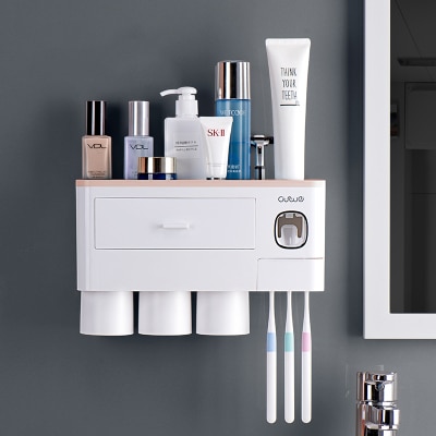 • Additionally, it has a small practical drawer for small items, holders for cups and toothbrushes.