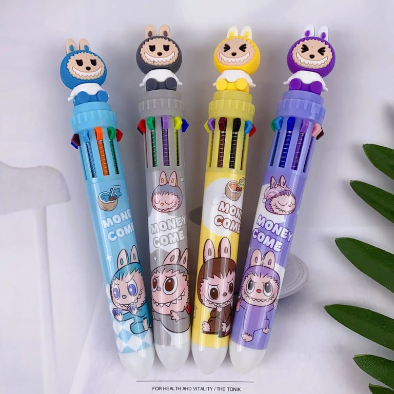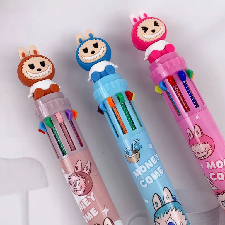 A cheerful multicoloured pen with a cute Labubu motif will delight children and adults alike. The practical arrangement of ten colours in a single pen body lets you switch colours quickly when writing, drawing and highlighting, and thanks to its playful design it becomes a favourite accessory for school, the office and at home.