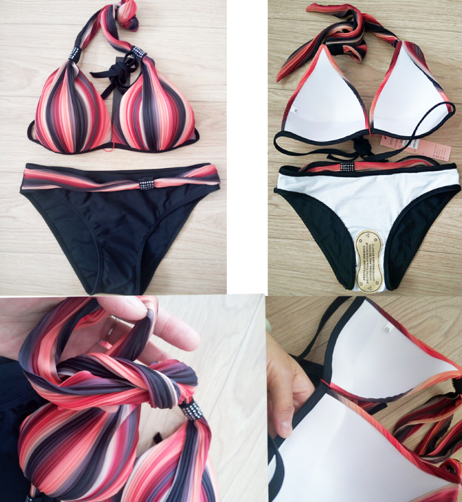 Multicoloured sexy beach bikini with a halter neck tie.