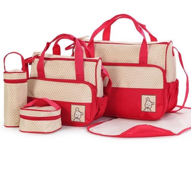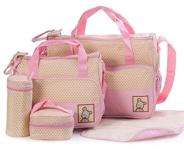 Set of bags for maternity needs. The bags can be hung on a pram.