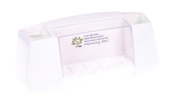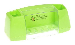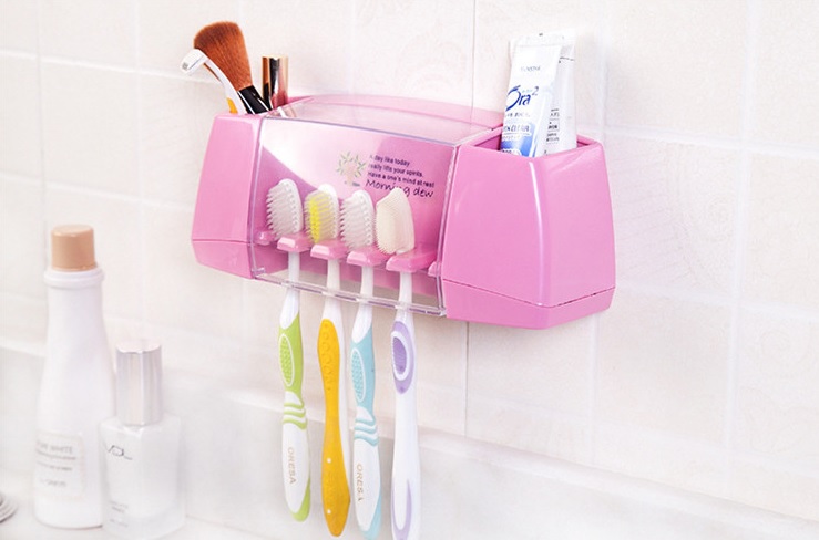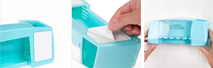 On each side of the holder, there is a compartment that can be used for storing toothpaste, cosmetic brushes, and razors.