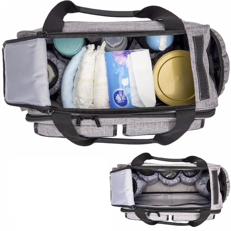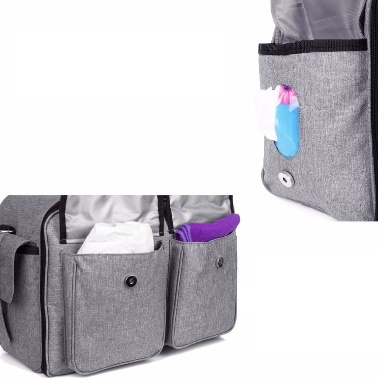A number of practical pockets, compartments for bottles, wipes or a laptop.