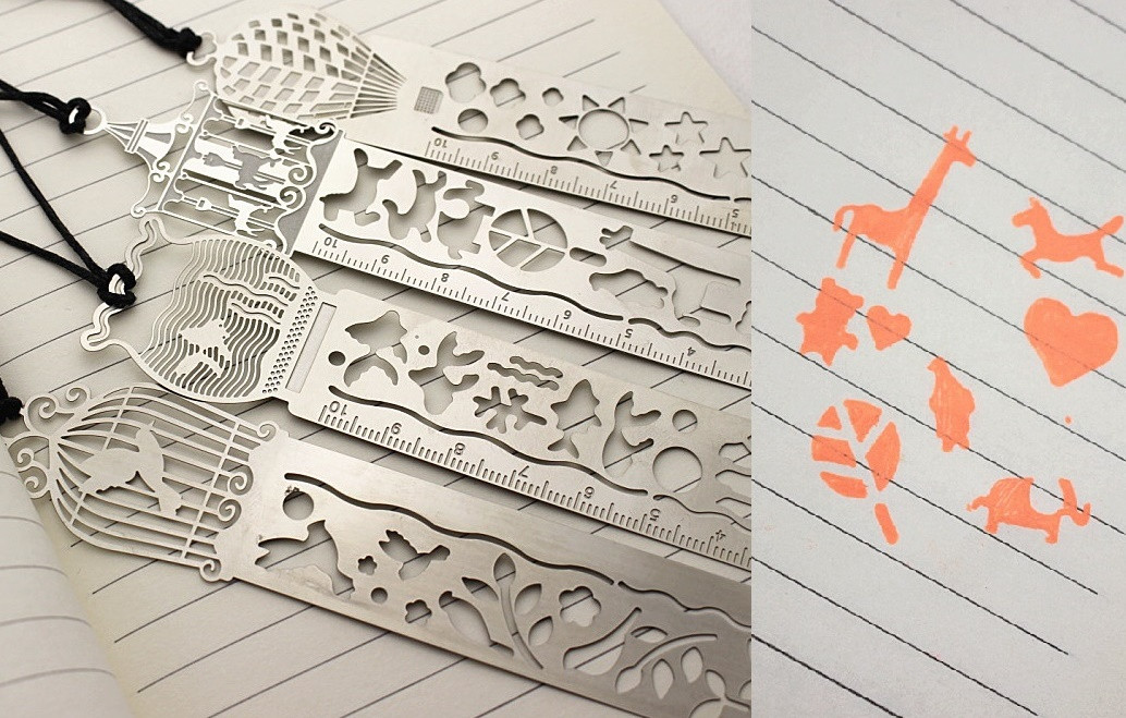 Multifunctional decorative ruler / bookmark with templates – 4 pcs