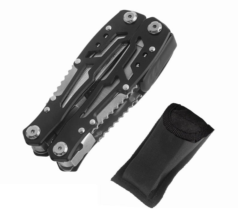 Multifunctional folding knife and pliers.