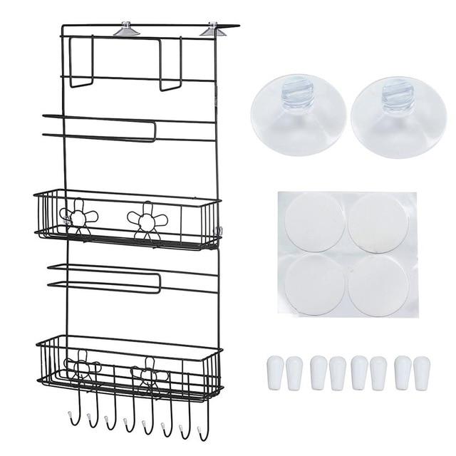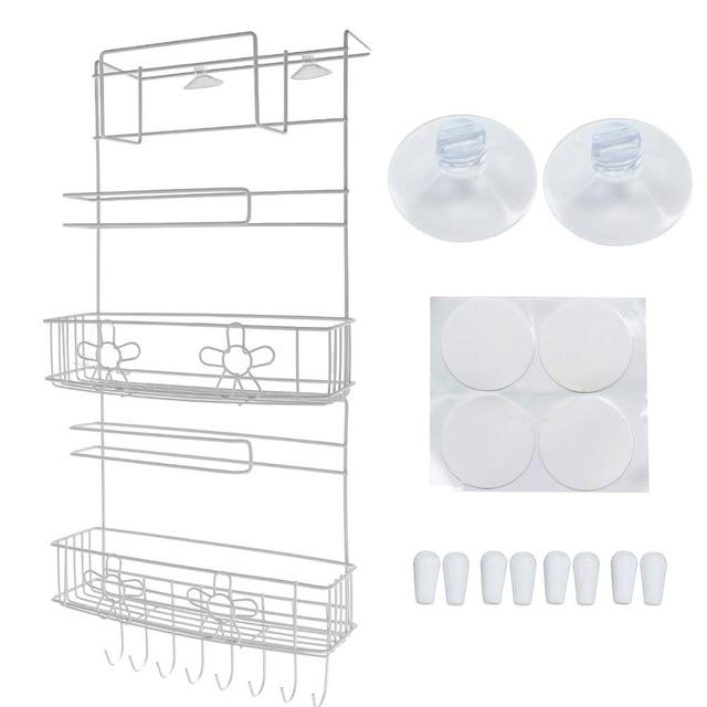 Multifunctional kitchen organiser that easily attaches to doors or the fridge.