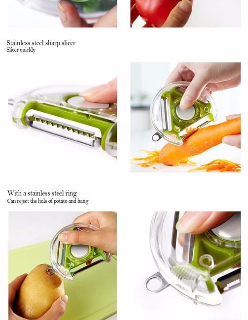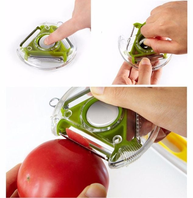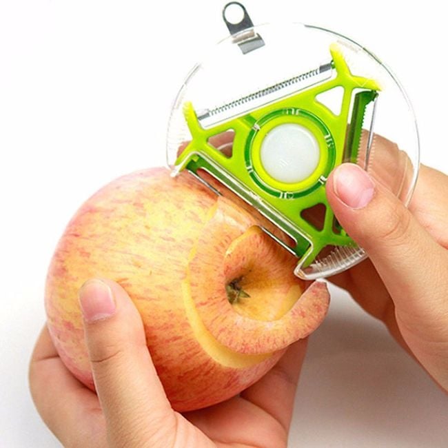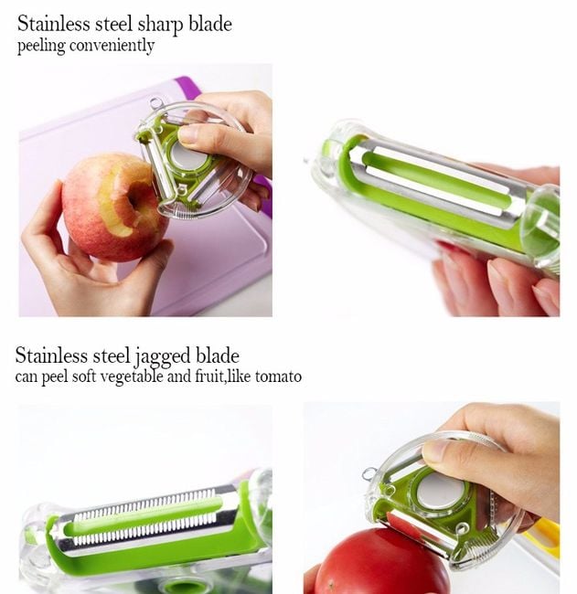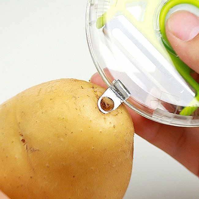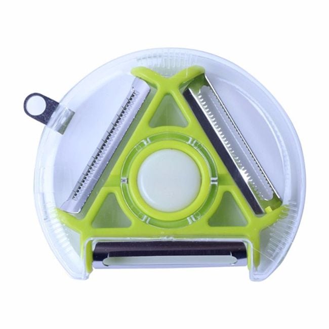 The rotary multifunctional slicer is a great helper in every kitchen. With its variously shaped blades, you can peel, scrape, scoop, or cut fruits and vegetables to your liking. Easy maintenance, cleaning, and handling.