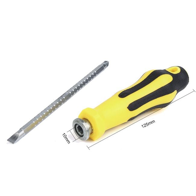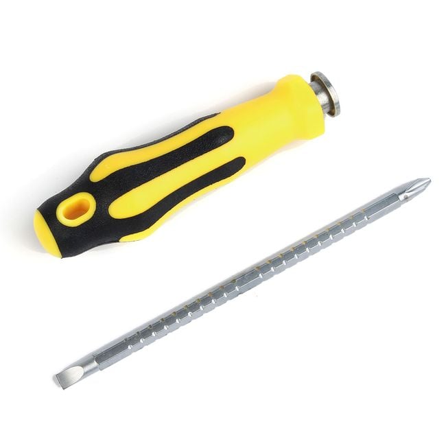 A multifunctional screwdriver is essential in every household. Every now and then, something needs to be tightened or loosened. This screwdriver will save you. The bottom part is double-sided. On one side, you will find a cross-head and on the other a flat head, so you can adjust it as needed.