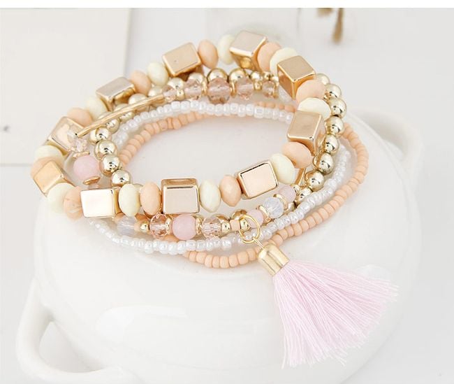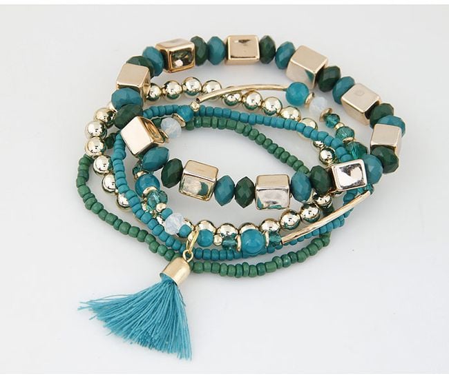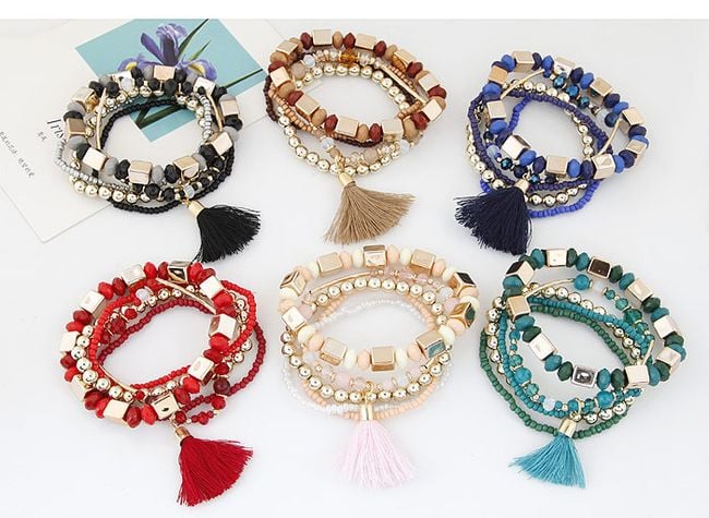 The bracelet consists of five pieces and is adorned with a tassel.