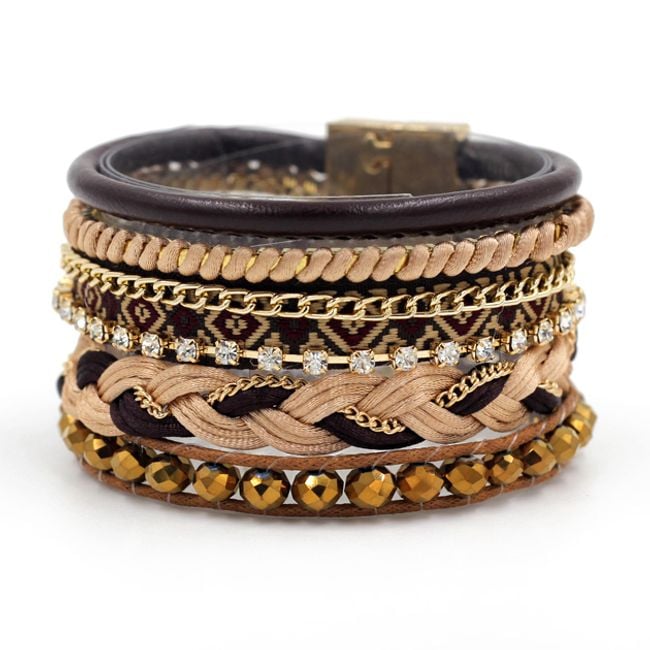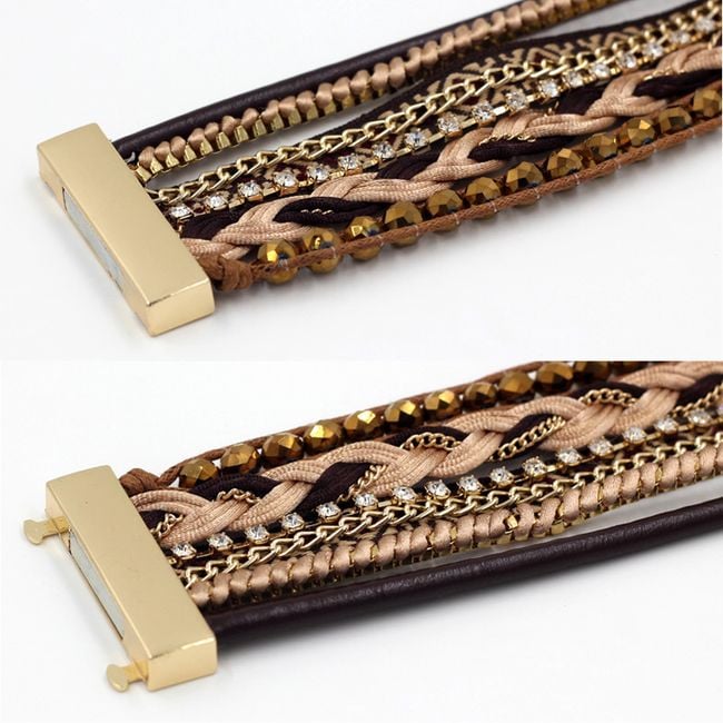 Women's multi-layer vintage bracelet with gemstones, available in many colours.
