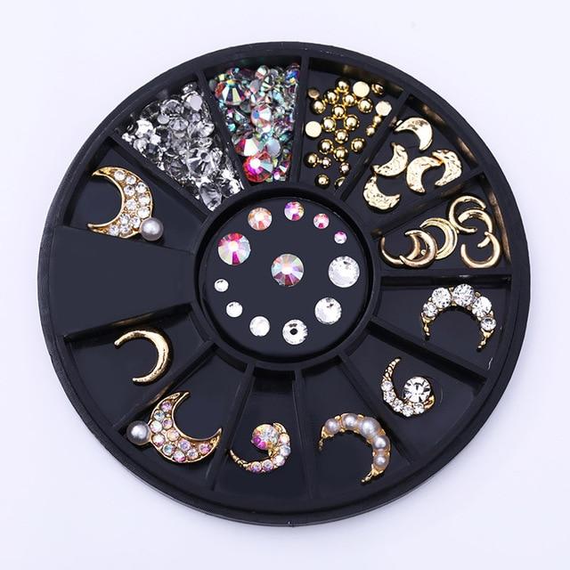 Beautiful decorations for your nails, several types in a box. Beads, geometric shapes, rhinestones, etc.