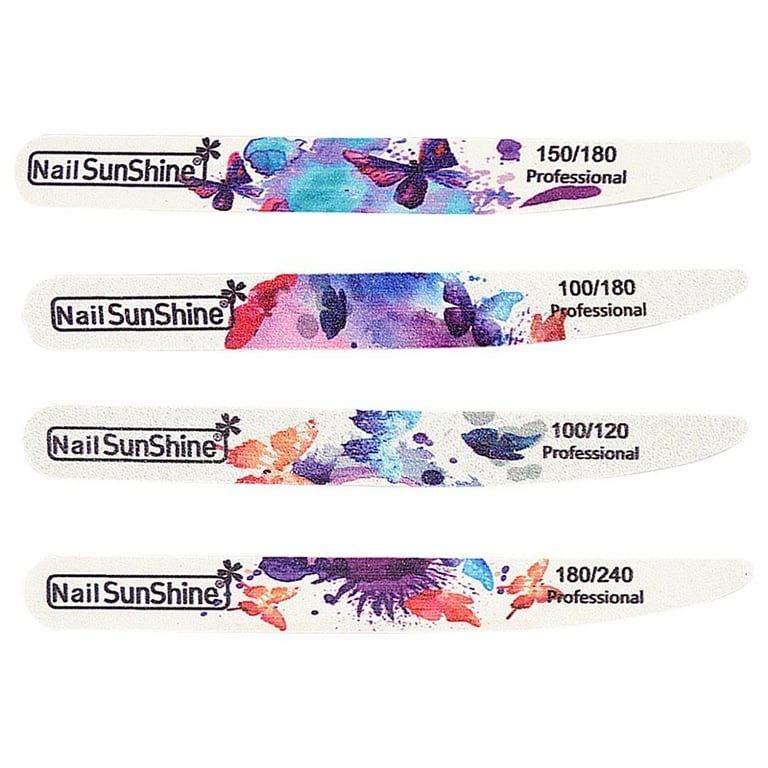 Nail file in straight, boat-shaped, and double-sided. The straight shape is suitable for partial adjustments, shaping the free edge of the nail, and filing the final shape of the nail. The boat shape is universal and the most popular shape. One side of the file is oval, while the other side is flat. The round shape is ideal for working on the material or nail around the cuticle. The flat side is used for shaping the free edge of the nail. Because the file is wide, it can also be used for working on the entire surface of the nail.