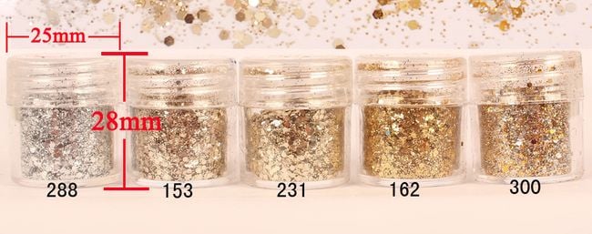 These glitters are primarily used for artificial nails or for decorating and embellishing your home. Suitable for application with a brush. The sparkling appearance catches the eye at first glance. Available in 5 colour options.