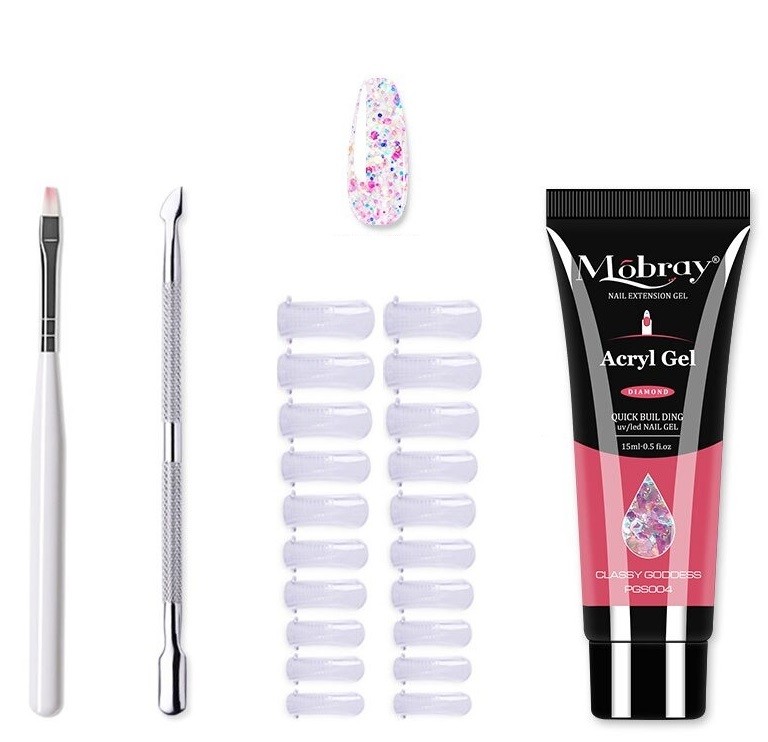 The kit includes a brush, nail tips, nail gel, and a double-sided tool for cuticle care. With this kit, you can create salon-quality gel nails from the comfort of your home. You can choose from 12 colours.