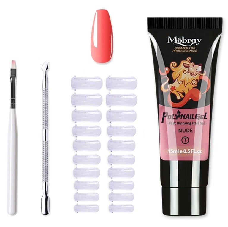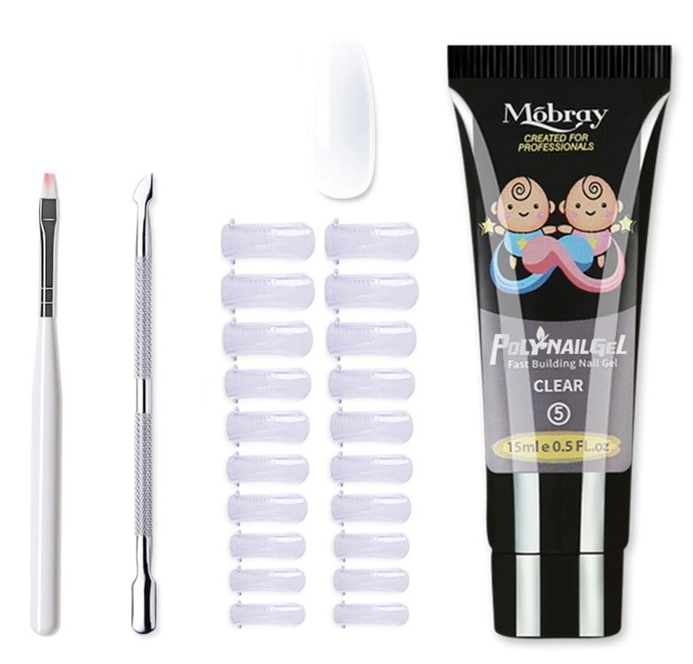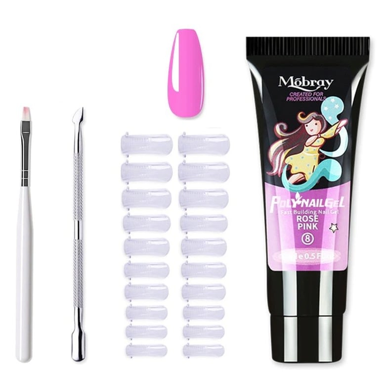 The kit includes a double-sided tool for cuticle care, a brush, nail tips, and nail gel. With this kit, you can create gel nails at home that look salon-fresh. You can choose from 12 colours.