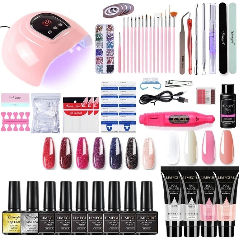 Nail modelling kit with UV/LED lamp. In the kit, you will find everything you need for nail modelling. The kit also includes a 54 W UV/LED lamp, which cures gel nails in just a few seconds. You can choose from two variants. Suitable for professional use as well.