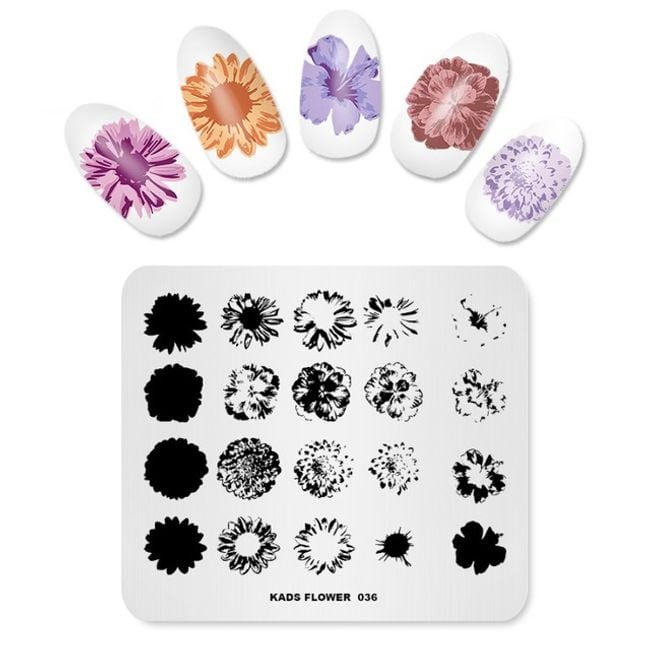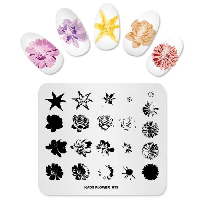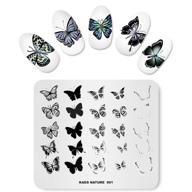 Metal plate with nail templates featuring beautiful designs.