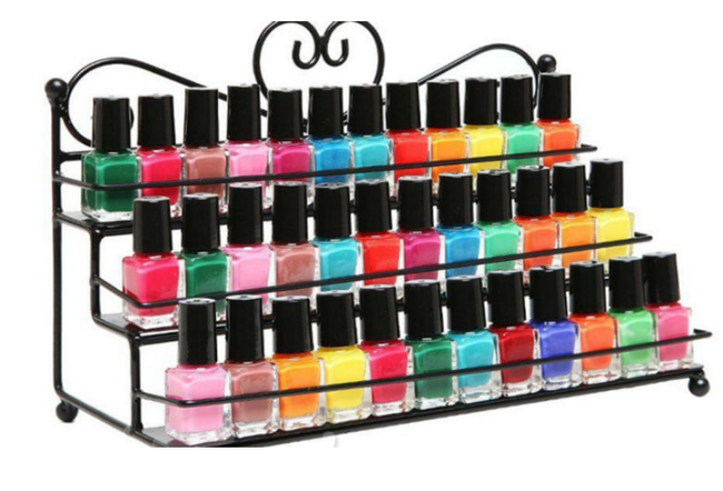 The organiser has two tiers and is suitable for nail polishes.