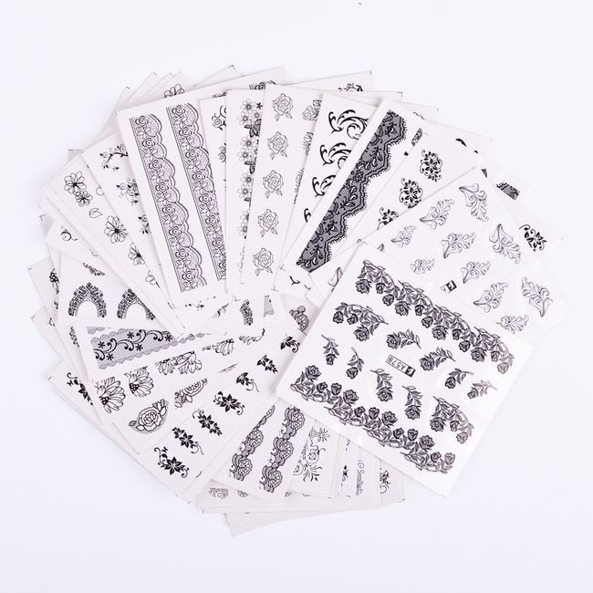 The large sticker set includes 40 sheets with various designs. You will find stickers featuring butterflies, musical notes, or roses, for example.