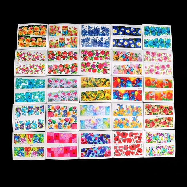 The floral sticker will colourfully decorate artificial nails. The package contains 50 labels.