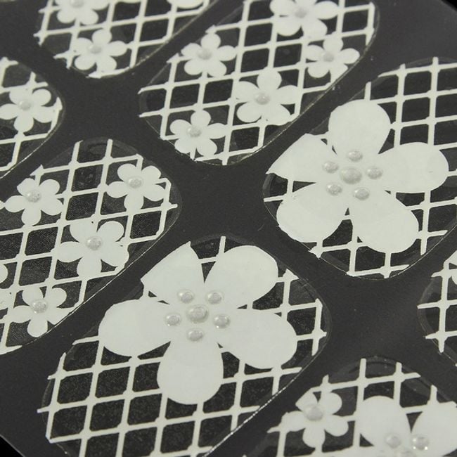 Nail stickers in the form of white lace and flowers can be suitable for everyday wear as well as for special occasions. Your nails will look well-groomed and everyone will envy you.