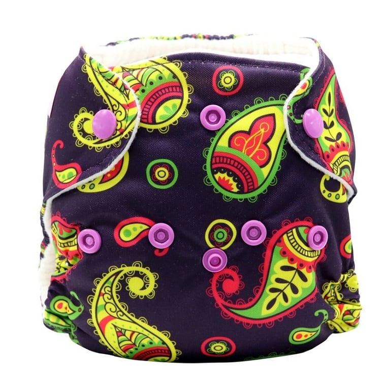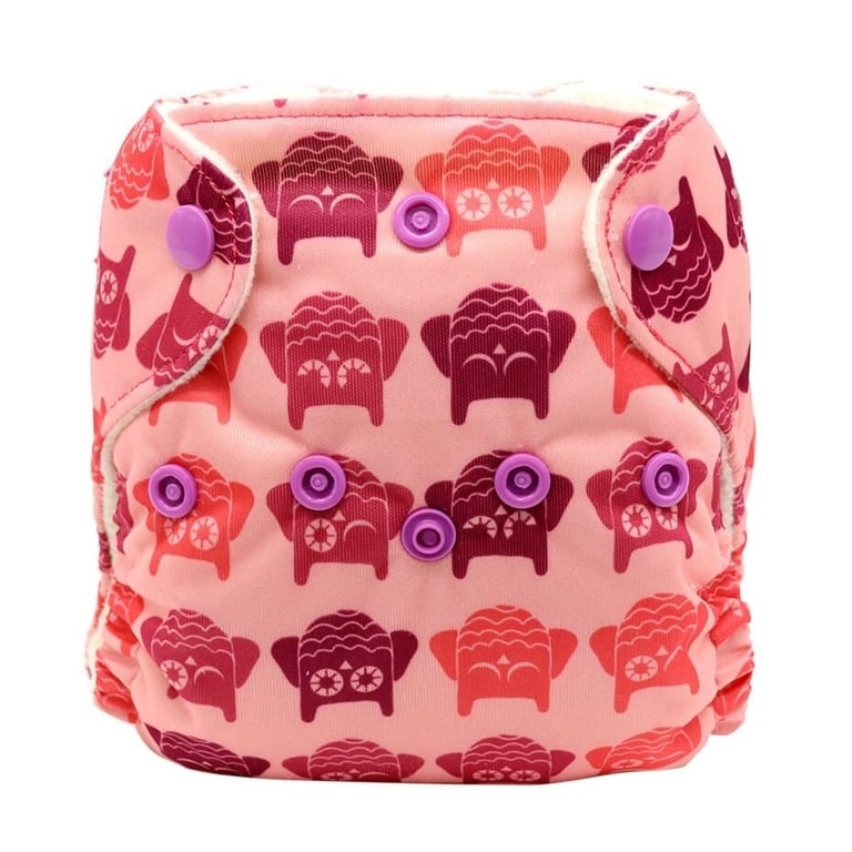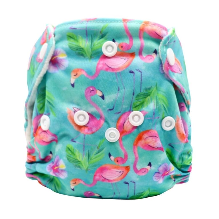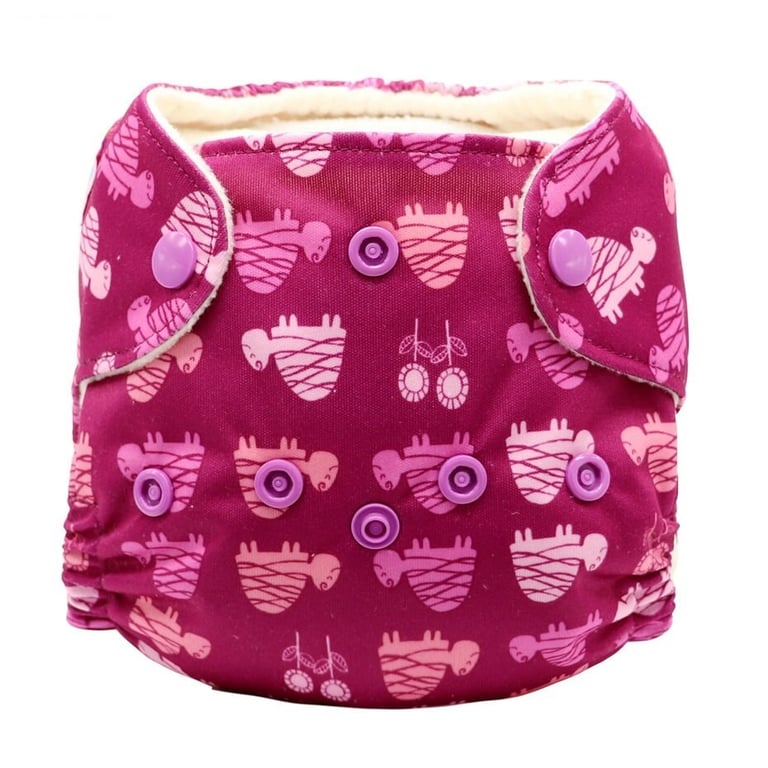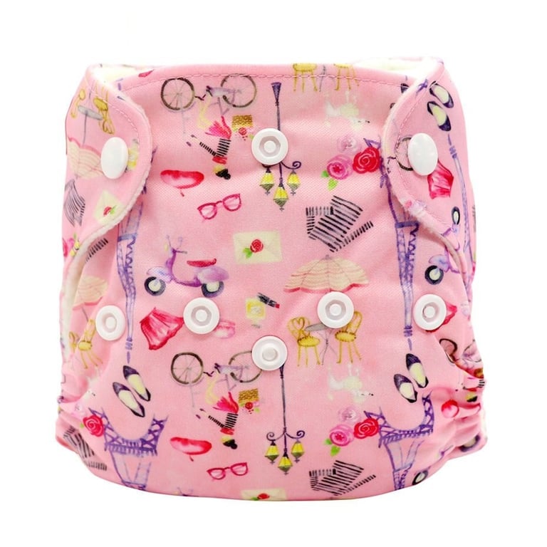 Reusable newborn diaper pants with adjustable fastening.