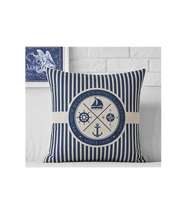 The cover features a stylish nautical print and is suitable for any home.