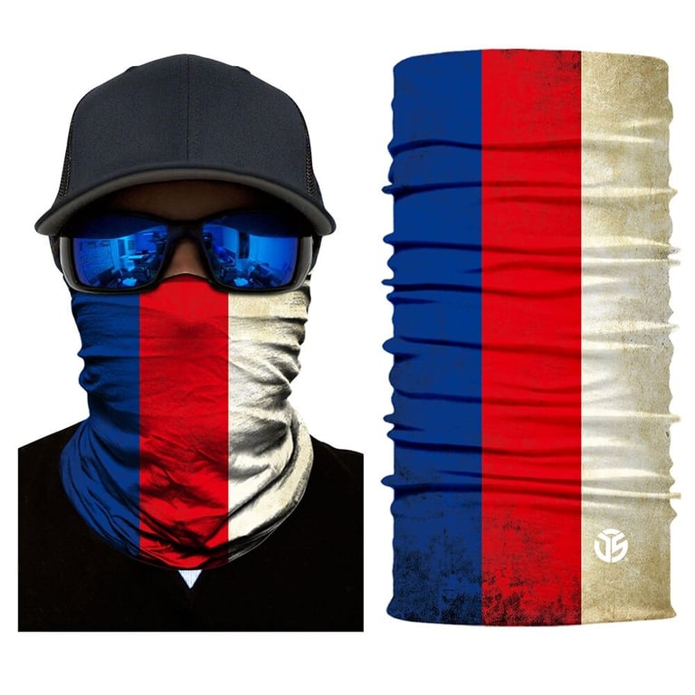 Quality neck warmer with prints of various flags.