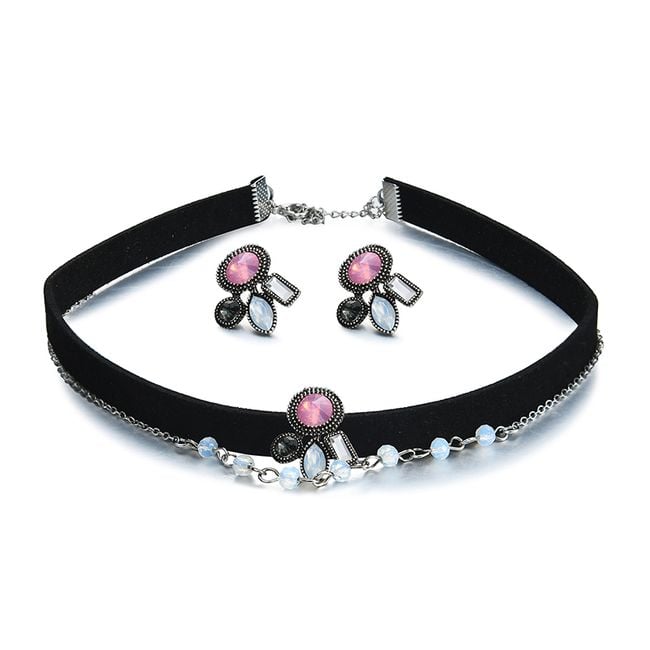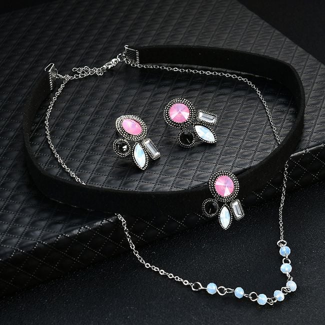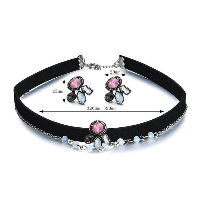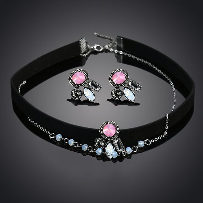 A beautiful set of choker necklace and earrings adorned with colourful costume jewellery stones. A lovely accessory for a formal outfit as well as for everyday wear. Ideal as a gift, for example for a close friend. You can find more details in the product description.