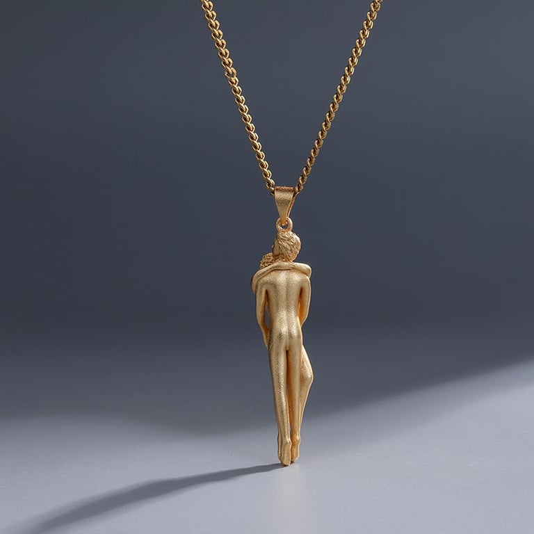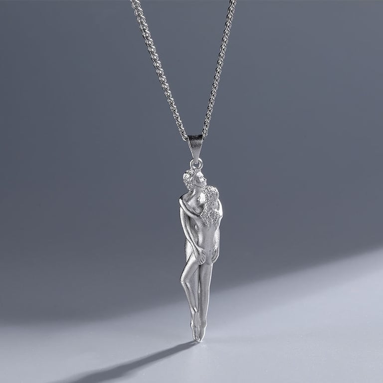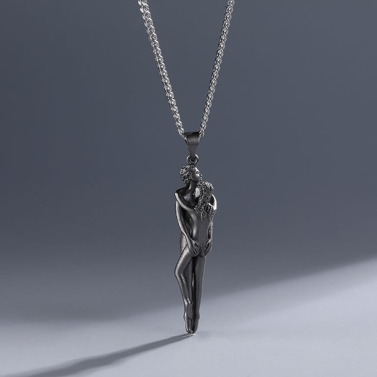 Necklace with a beautiful pendant of an embracing couple