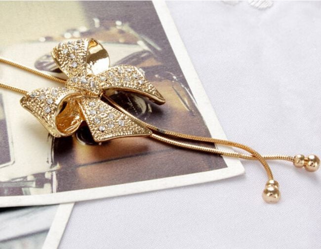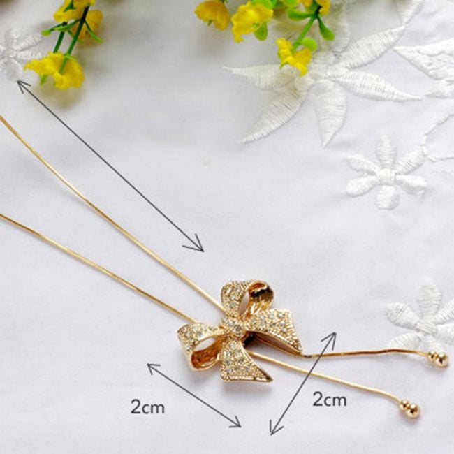 This necklace will soon become an indispensable part of your outfit. Its standout feature is the prominent bow, which looks very cute. It is available in two colours.
