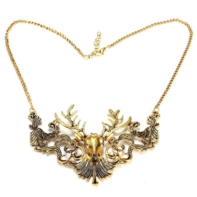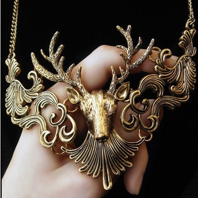 Do you like unconventional jewellery? If so, then get this necklace with a large deer pendant. The necklace is in gold colour and no one will overlook it.