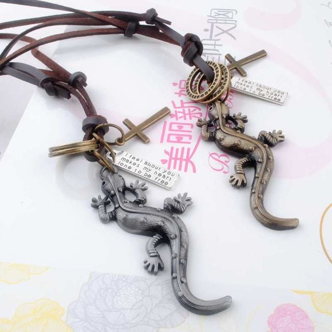 The necklace is very stylish and is adorned with a lizard pendant.
