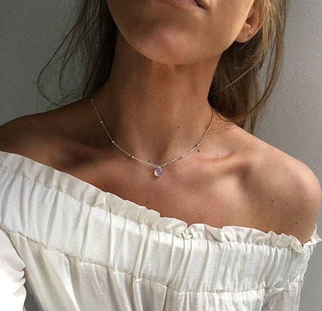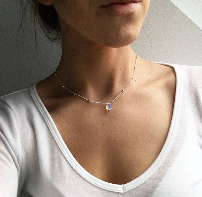 The necklace comes in silver or gold colour, with delicate links and is adorned with a rainbow pendant that resembles a drop and will suit any woman or girl.