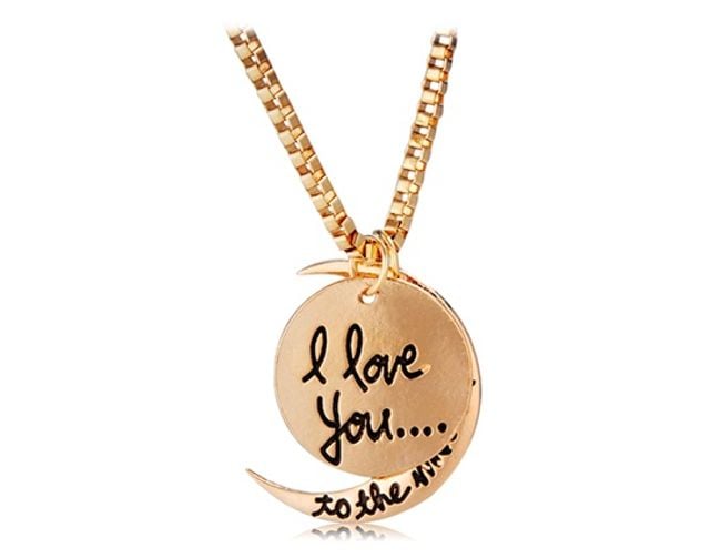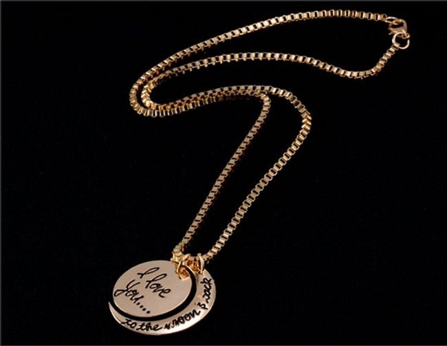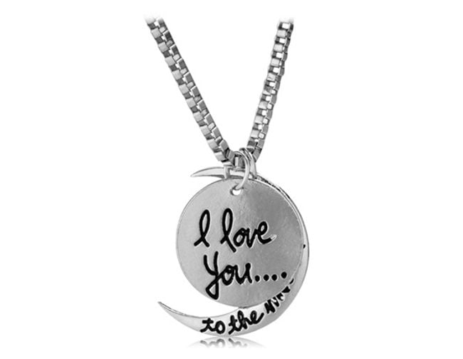Make yourself or your loved ones happy with this necklace, which expresses the feelings you have for them. The pendant features the inscription I Love You… to the moon & back. The necklace is available in two colour options, choose the one that is closest to your heart.