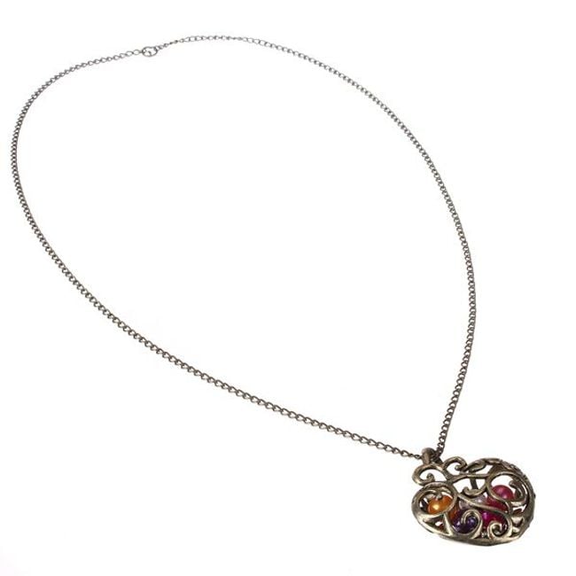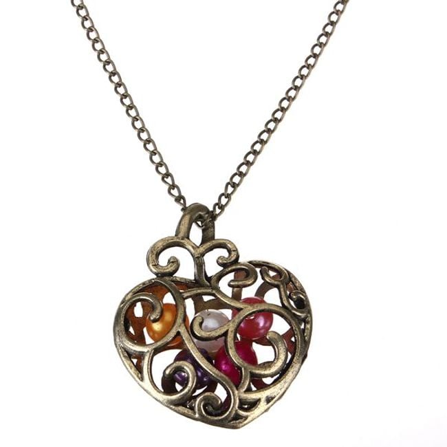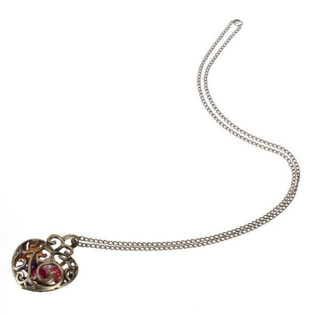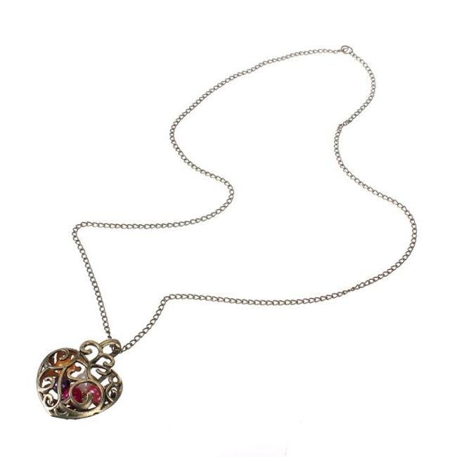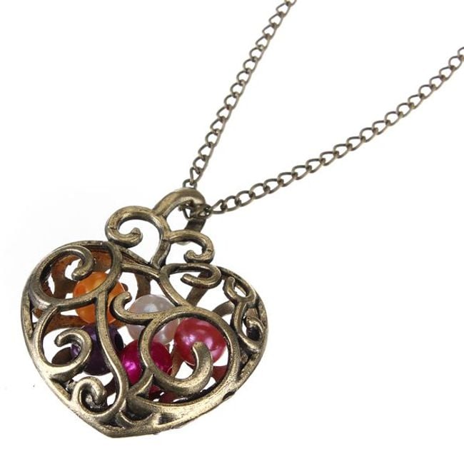 Add this heart-shaped pendant necklace to your jewellery box. Inside the heart are colourful beads. This piece of jewellery is suitable for everyday wear.