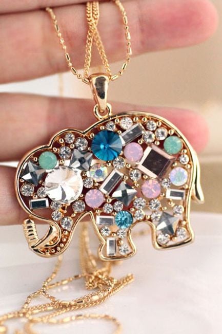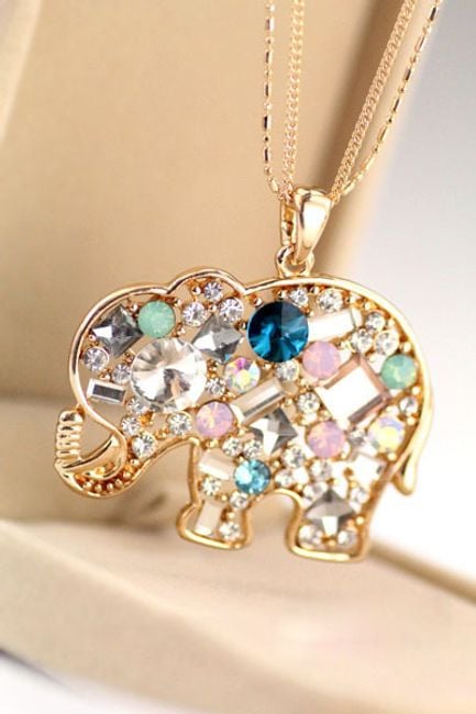 The elephant necklace inlaid with stones will make a lovely gift for any woman.