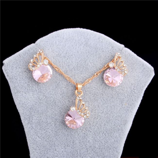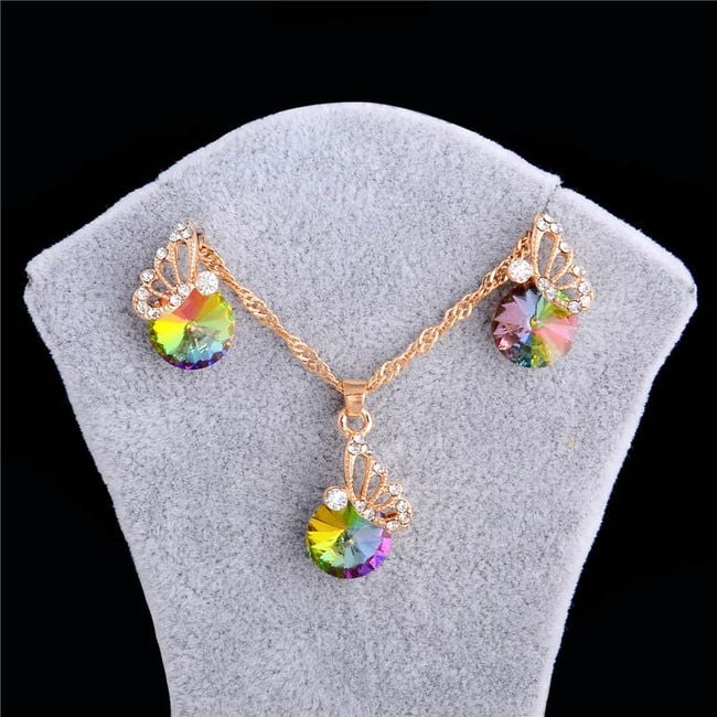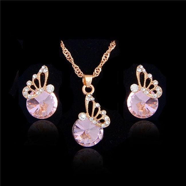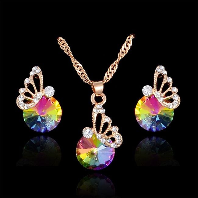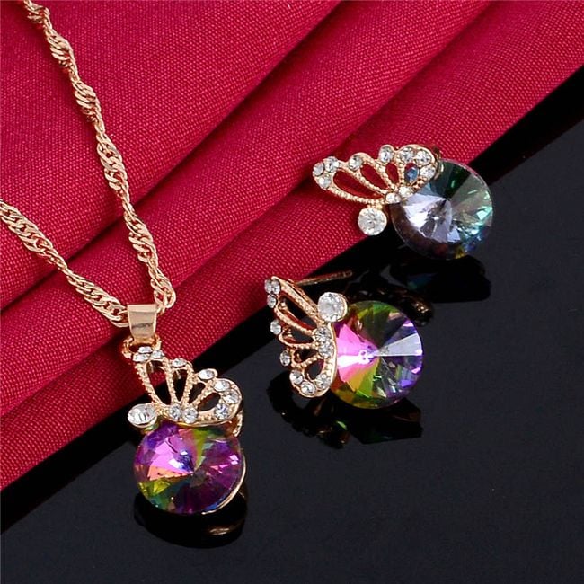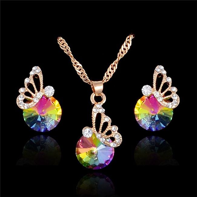 The set is adorned with beautiful gemstones and a small butterfly.