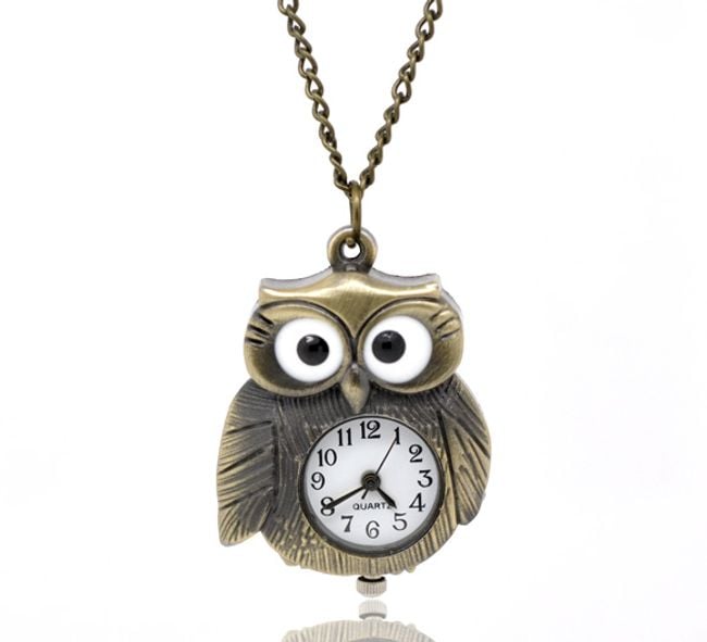 Get a necklace with a cute little owl that has a small watch face instead of its belly.