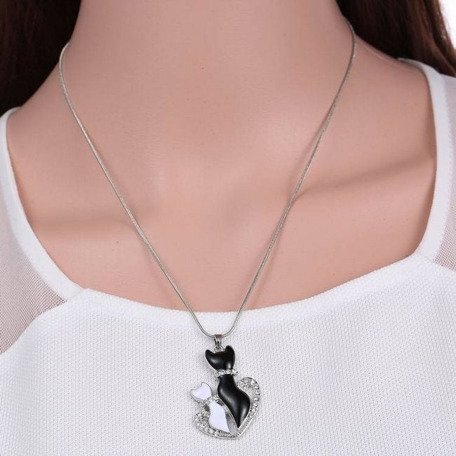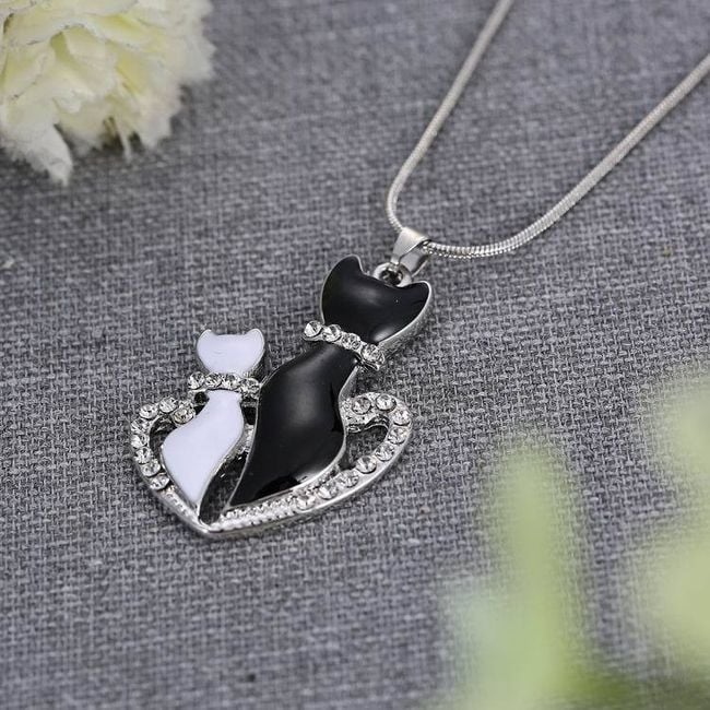 The necklace with two kittens will win you over with its stylish design. The pendant features two kittens cuddling together. The jewellery is also adorned with cut glass stones. You can also give it as a gift.