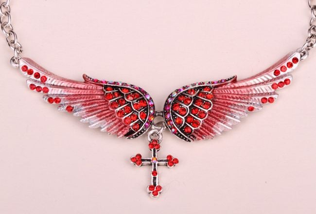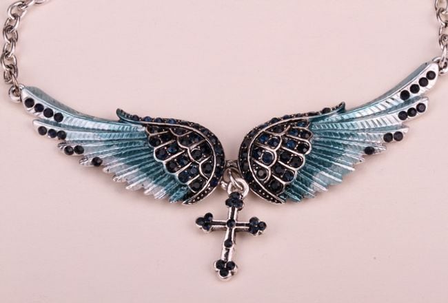 Necklace with wings and a cross – 8 colours