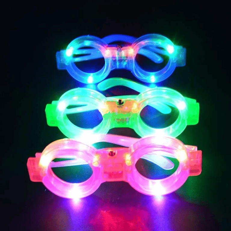 Get these fantastic party LED glasses. With 12 pieces, you can equip your crew and stand out from the crowd. 6 LED lights ensure bright colours. The glasses have two modes. They can shine brightly or flash. They are made from durable plastic, so they are not easily damaged.