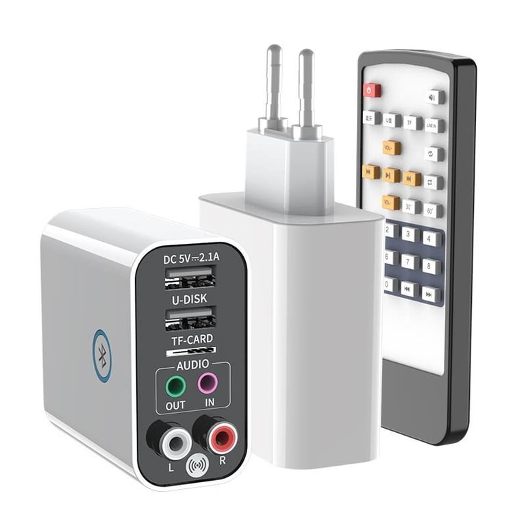 Package Contents: 1x Bluetooth adapter, 1x audio cable, 1x remote control